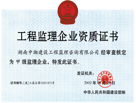 工程監(jiān)理企業(yè)資質(zhì)證書