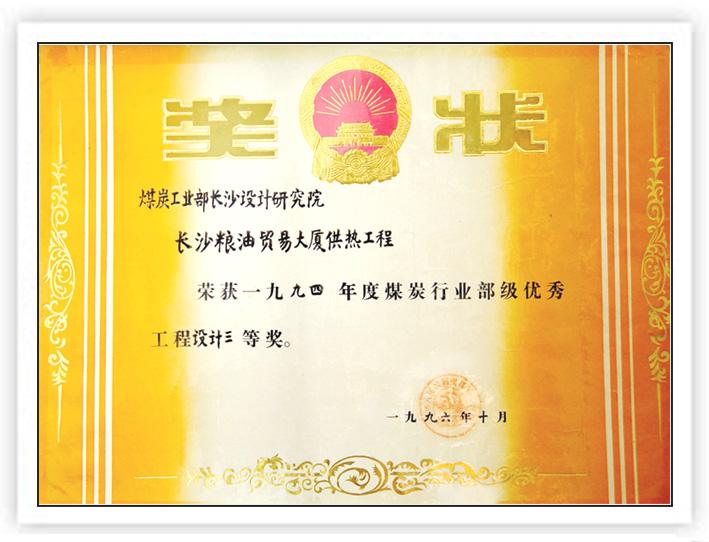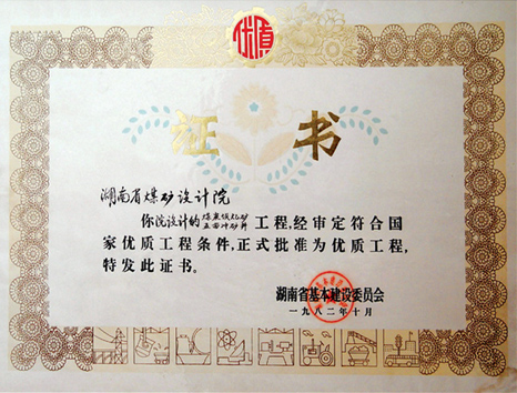 湖南省優(yōu)秀設(shè)計表揚金獎(1984)