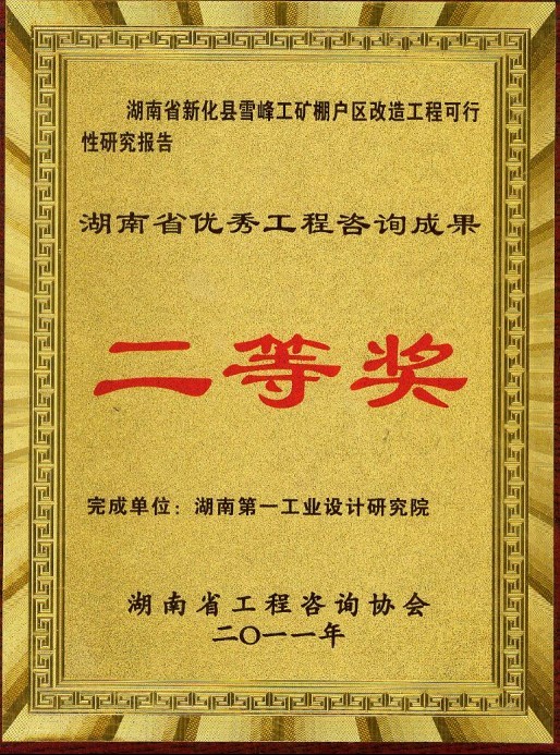 湖南省優(yōu)秀設(shè)計項目二等獎(1984)